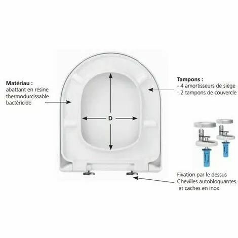 Abattant pour WC recouvrant forme droite, en résine thermodurcissable, garantie 2 ans.