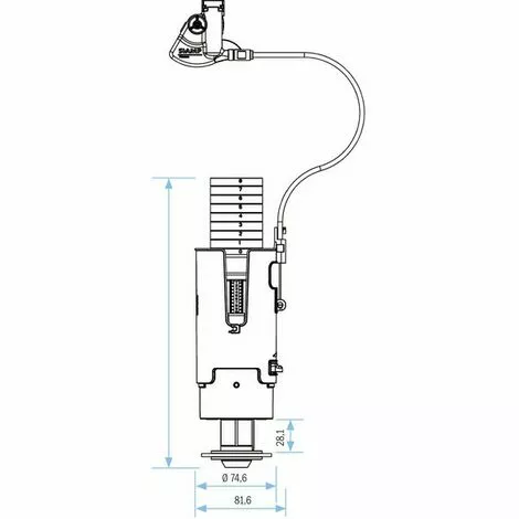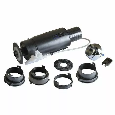 Mécanisme spécial rénovation, à câble, bouton poussoir double volume, complété d ‘un adaptateur spécifique s ‘adapte sur les bondes SIAMP, MPMP, REGIPLAST, NICOLL, SAS, WIRQUIN